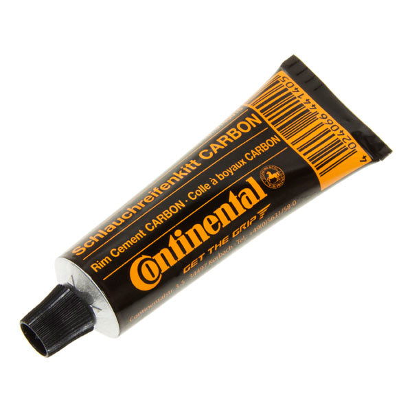 Carbon rim cement for tubulars, in a black packaging, was specifically designed for increased thermal strain and the particular properties of the surface of carbon. The unfavourable heat dissipation of carbon softens conventional cement, particularly during long descents, which means that the tyre may become detached from the rim.
