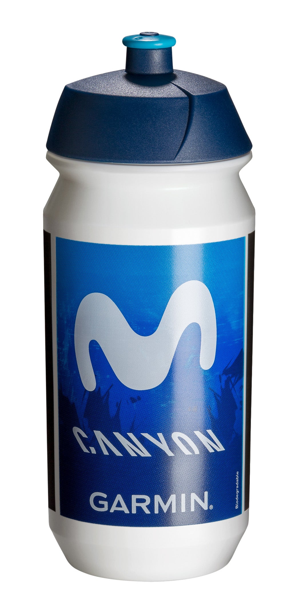 The official pro team water bottle is the Shiva Bio, made from 100% biodegradable polyethylene. Light, heat, and moisture have no effect on the quality of the bottle.